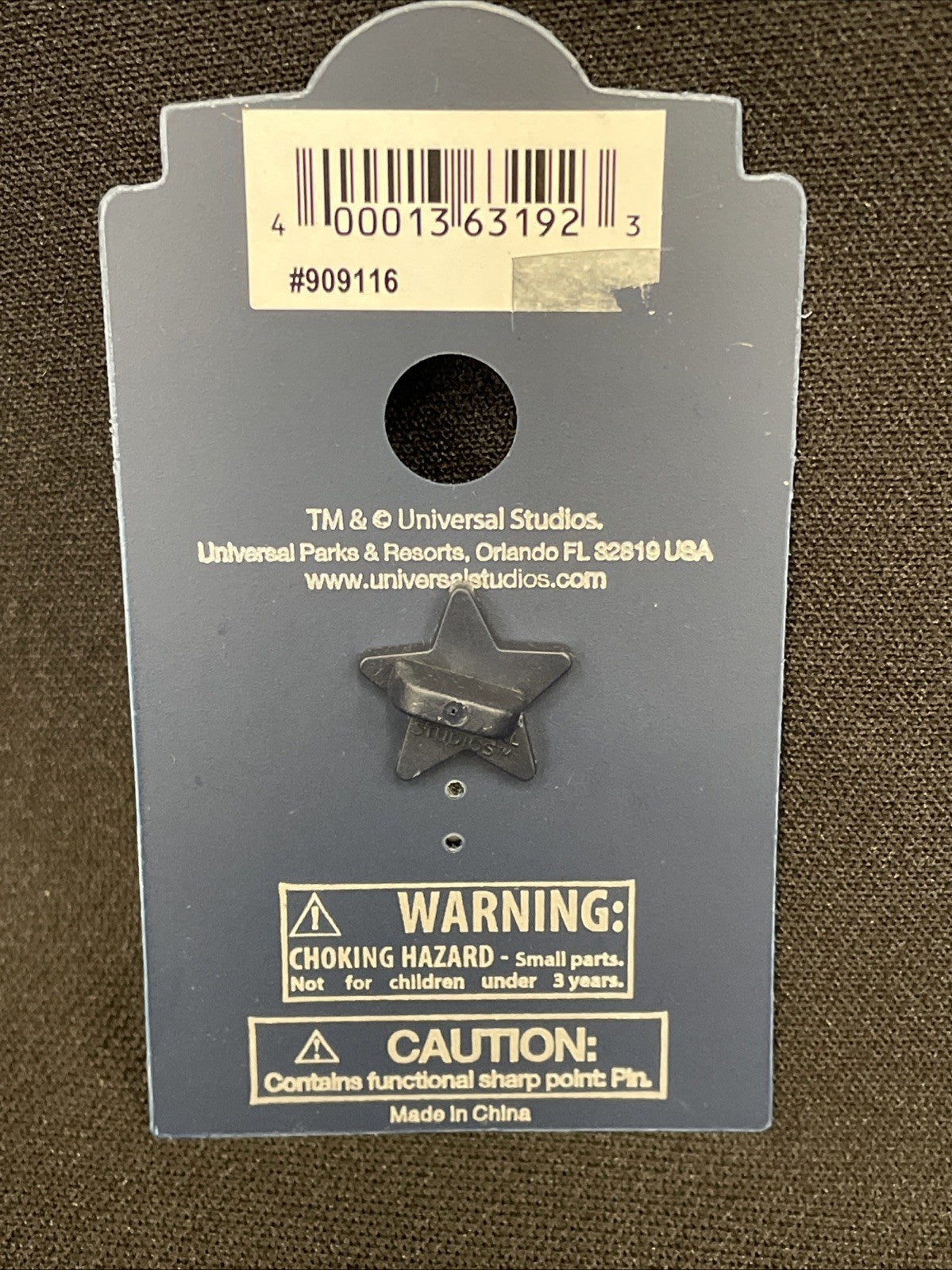 The product is a white spider on a red oval pin featuring the iconic Spiderman logo from Universal Studios. This trading pin is a collectible merchandise item inspired by the Spider-Man franchise, making it a must-have for fans of the superhero character. Made in China, this unique pin showcases the signature Spiderman monogram and is a great addition to any comic book or memorabilia collection.