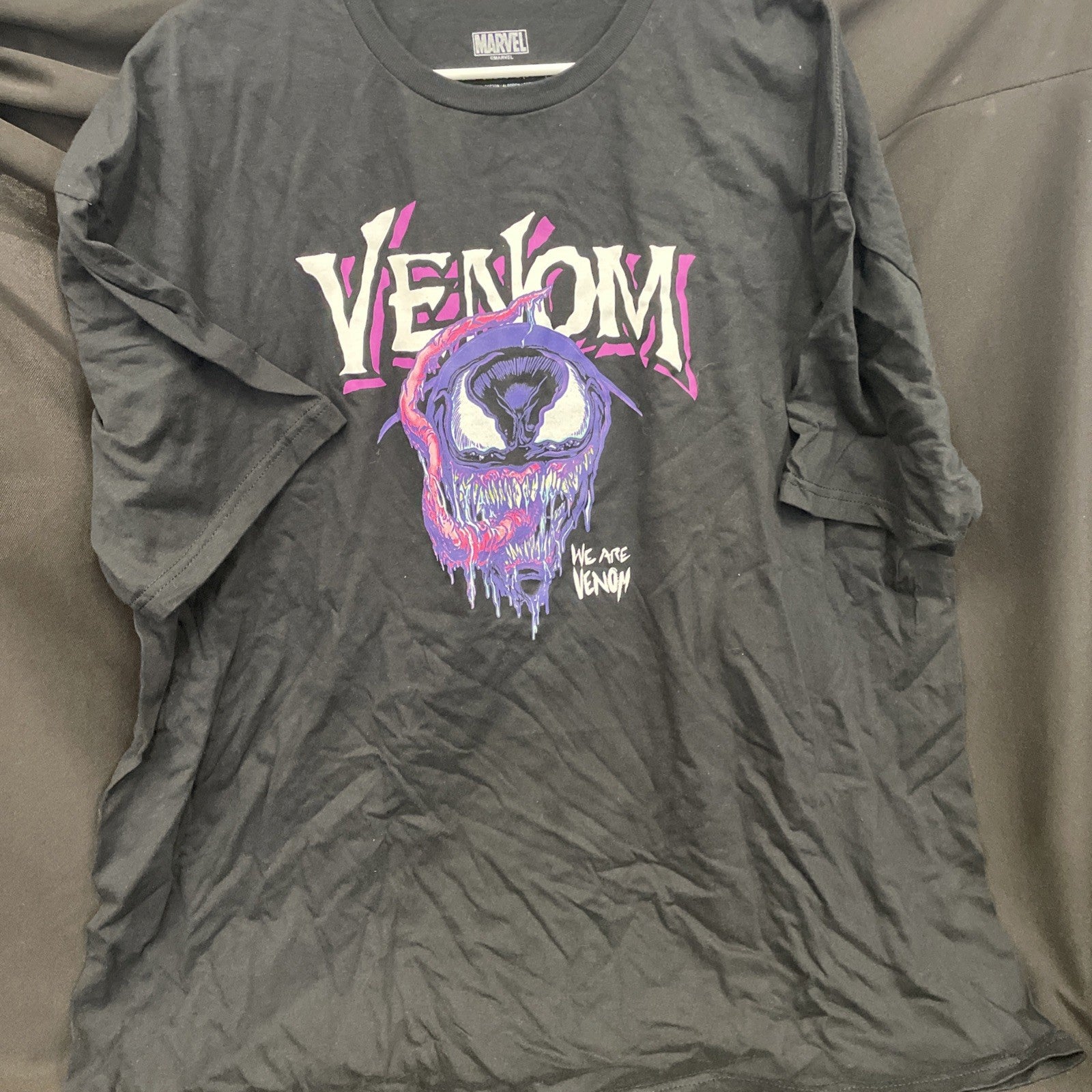 This Venom Men's T-Shirt is made of 100% cotton and comes in a size 3XLT. It features a crew neck and a graphic of Venom on the front. The shirt is black in color and perfect for any big and tall man who is a fan of the Venom character.