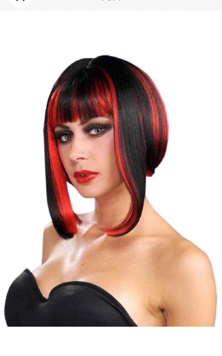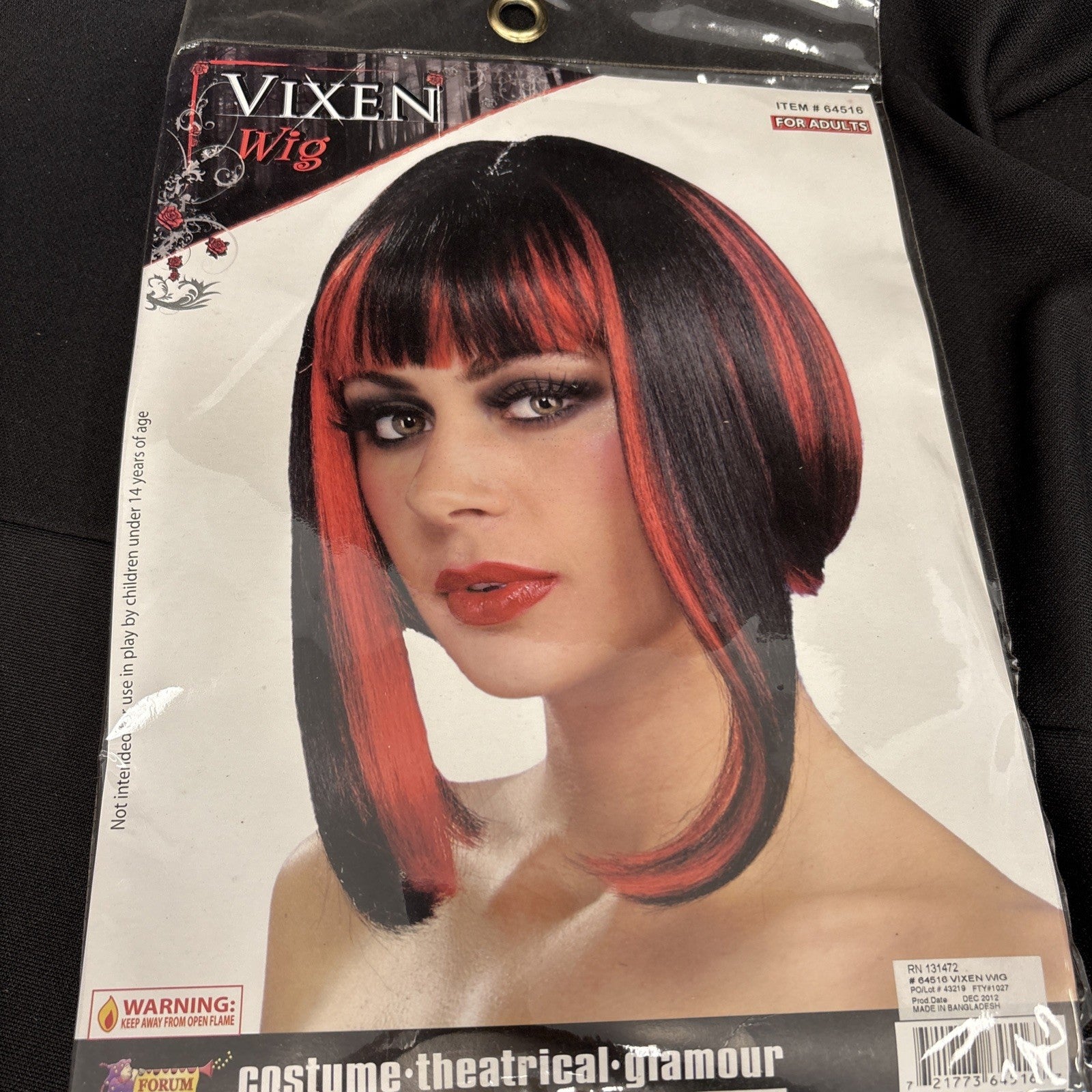 Vixen Wig Vampire Black Red Short Fancy Dress Halloween Adult Costume Accessory