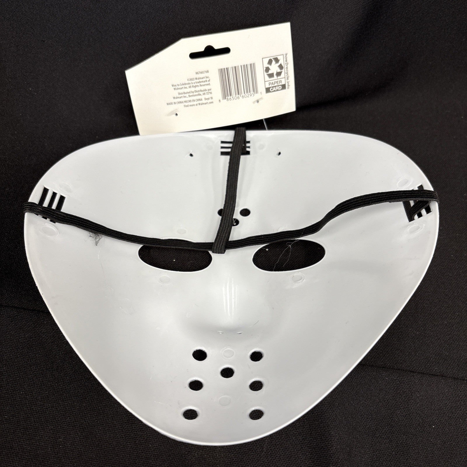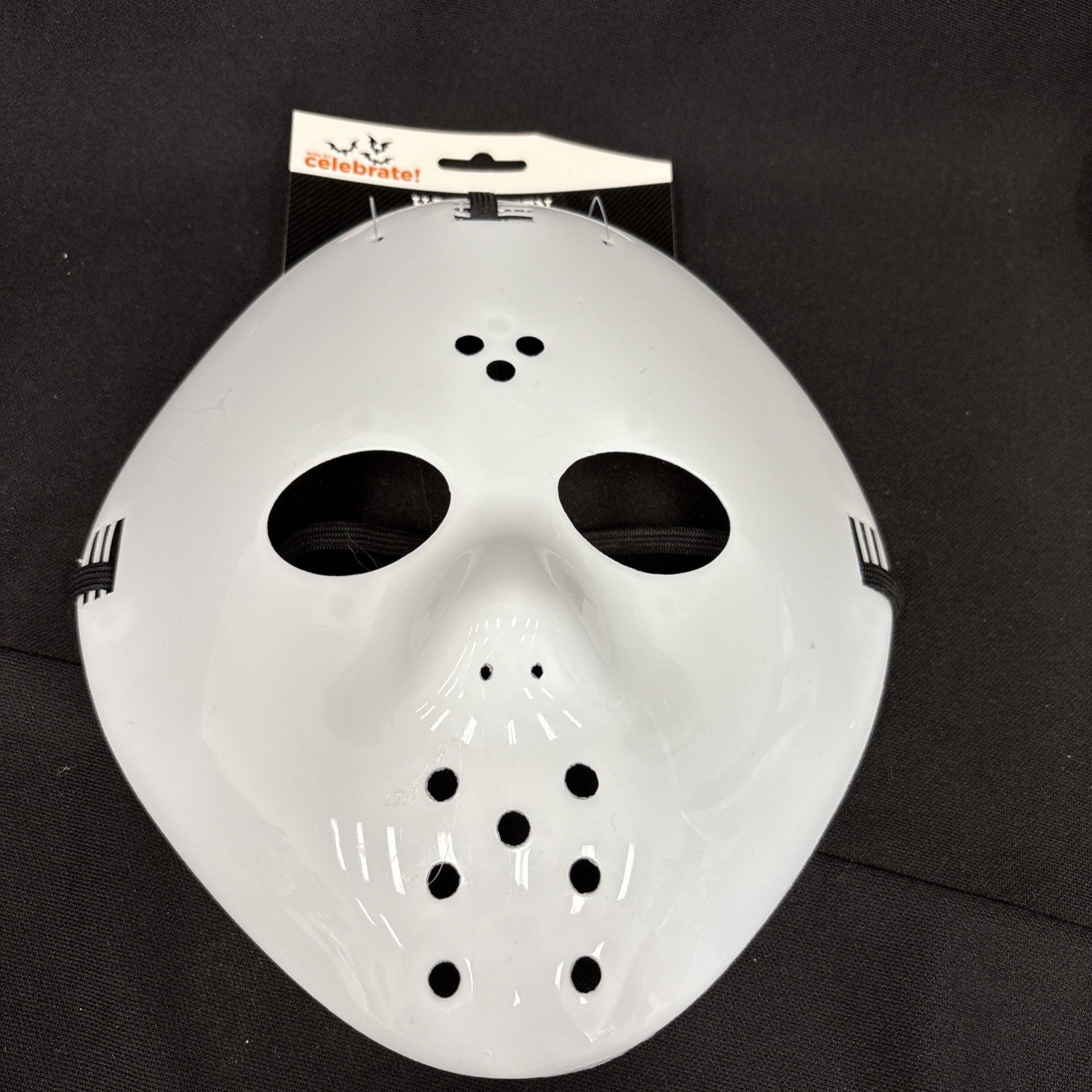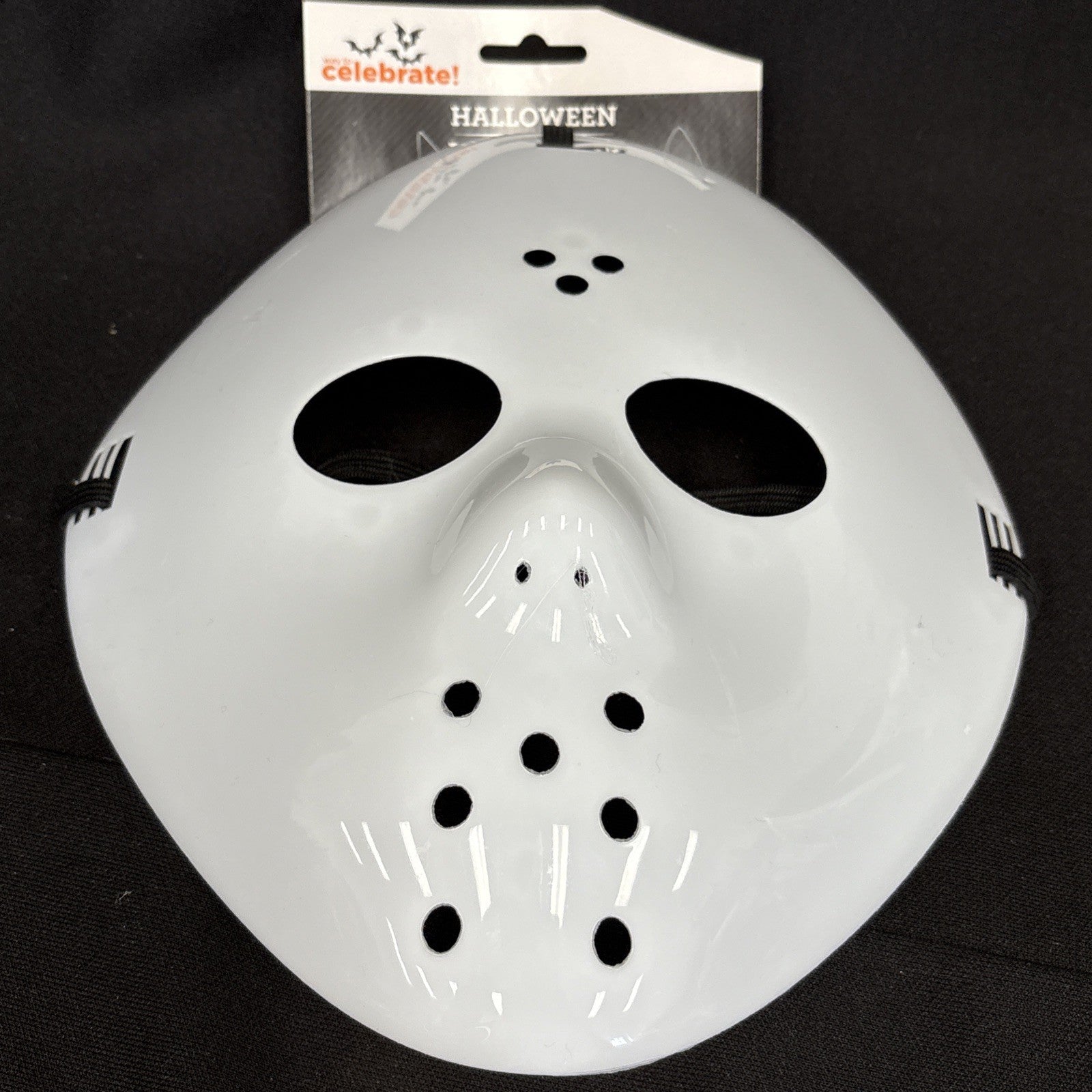The Way To Celebrate Halloween Unisex Adult White Hockey Mask is a plastic face mask designed for adults of any gender. The one-size mask features a classic white color with a Halloween theme