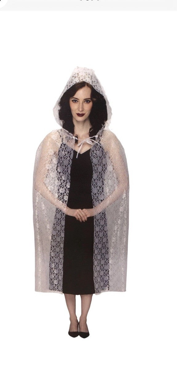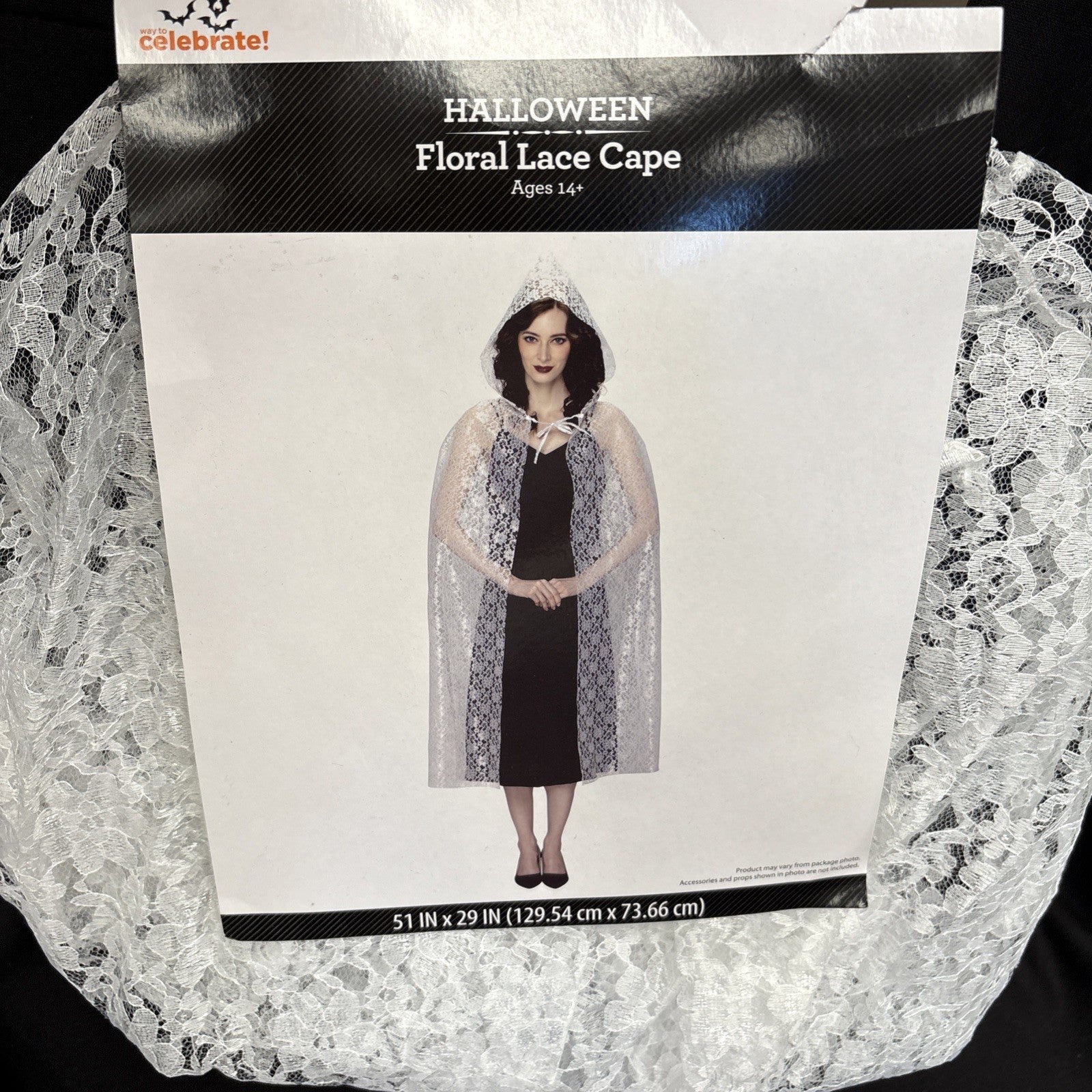 The Way To Celebrate Women's White Floral Lace Cape Costume Accessory is a stunning addition to any Halloween costume. Made of polyester, this one-size cape features delicate white floral lace detailing, 51âx29â