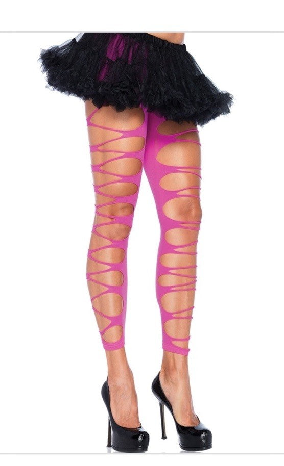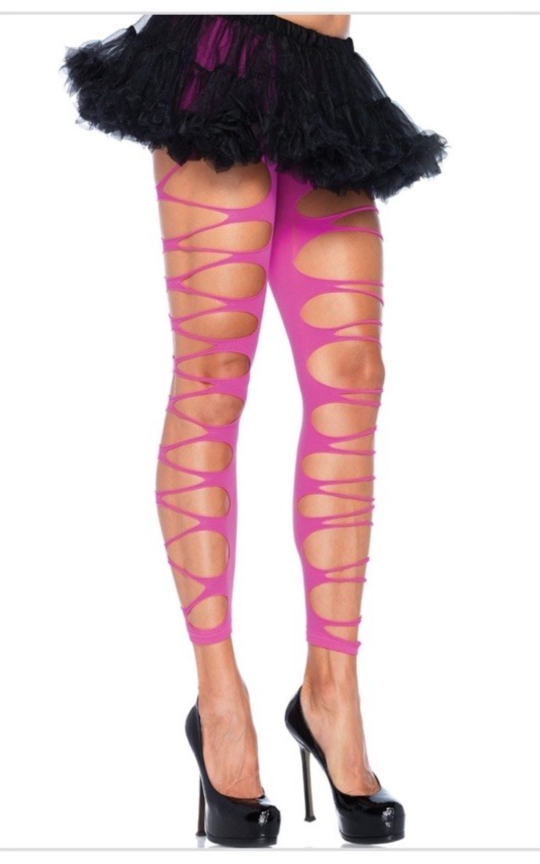 Women's Footless Contrast Shredded Seamless Tights, Neon Pink, One Size