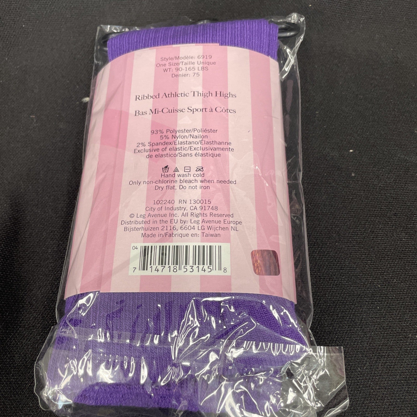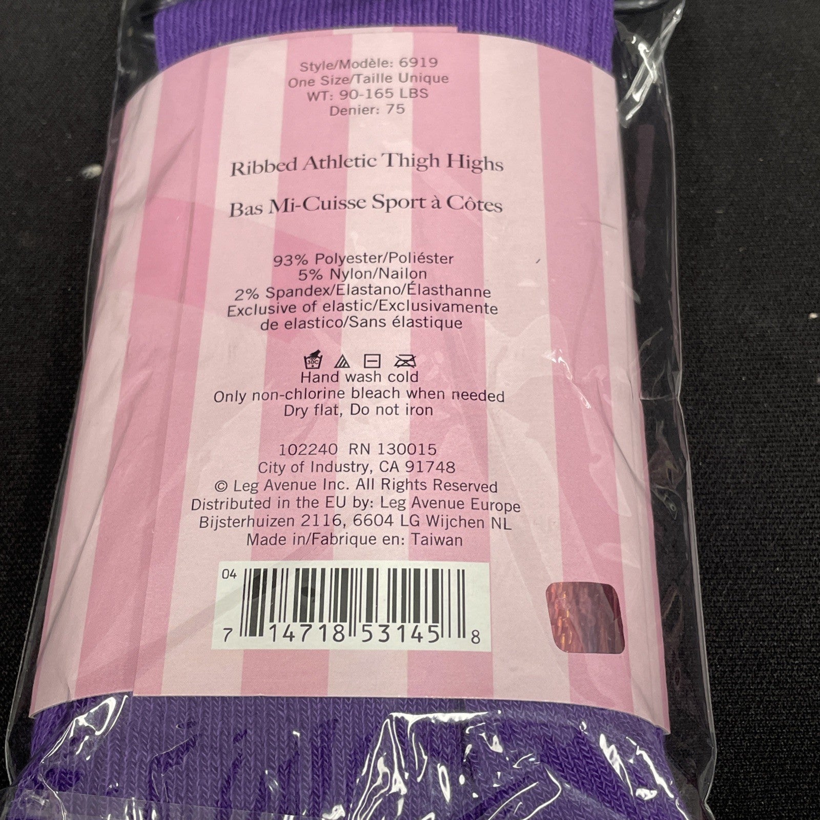 These Women's Ribbed Athletic Thigh High Socks by Leg Avenue are a stylish and functional addition to any workout wardrobe. The purple and white color combination adds a pop of color to your athletic ensemble, while the thigh high length provides extra coverage and support. The one size fits most design ensures a comfortable and secure fit for women of all shapes and sizes.