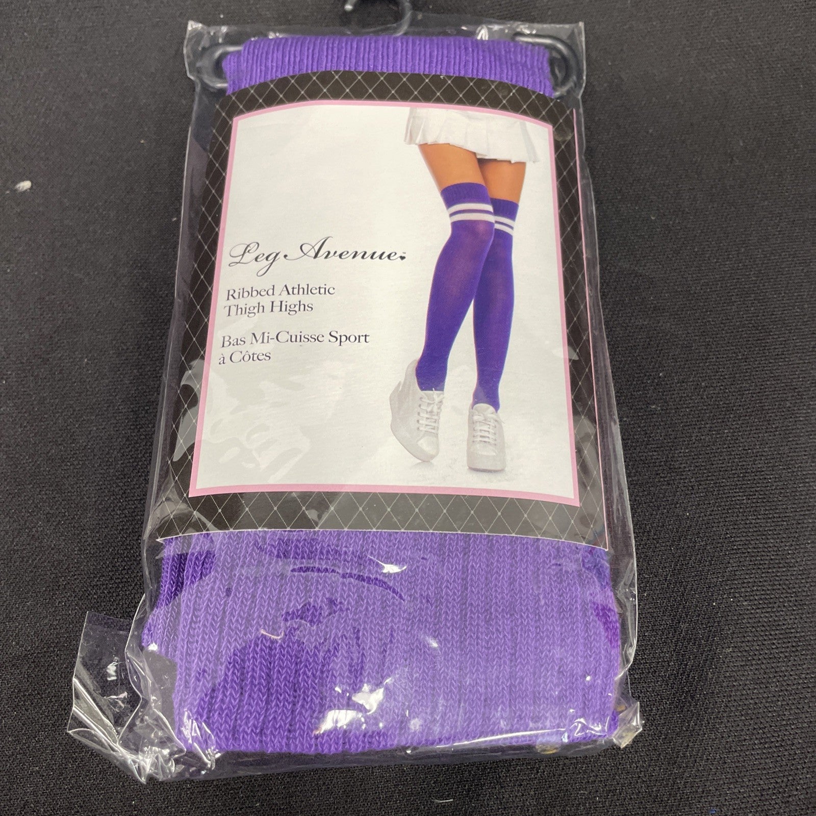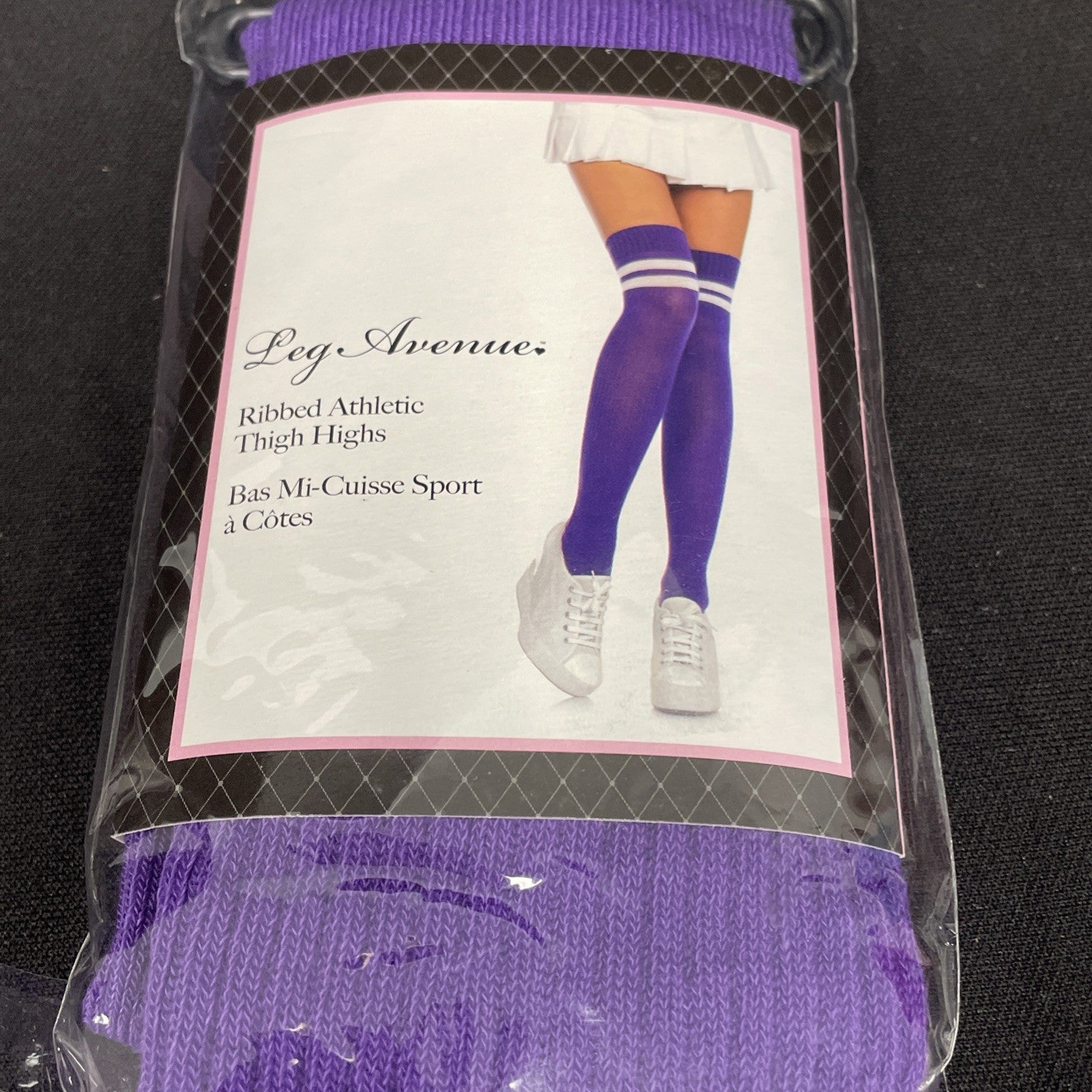 Womens Ribbed Athletic Thigh High Socks, Purple & White One Size (90165 lbs)