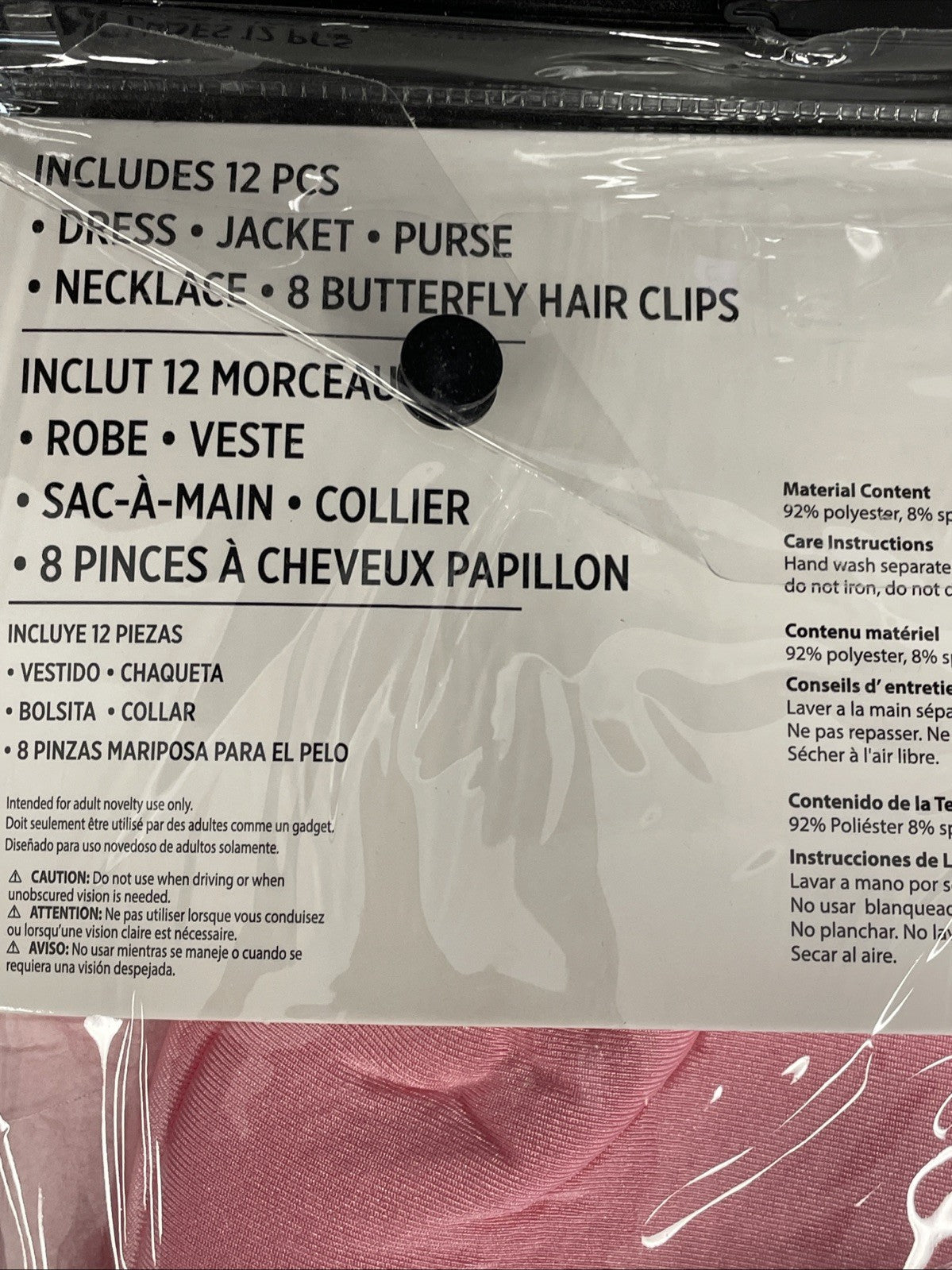 Includes dress jacket purse necklace and 8 butterfly hair clips