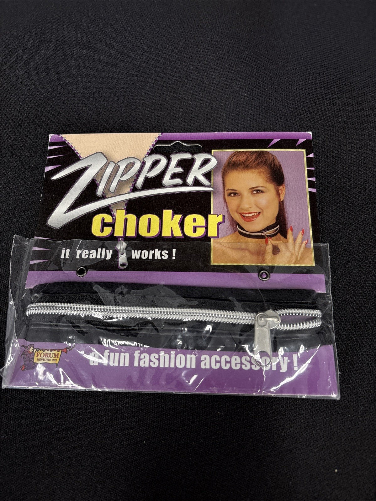 The Zipper Choker Costume Accessory is a unique and edgy accessory designed to be worn with costumes. The choker style collar features a zipper closure, adding a touch of rebellious flair to any outfit.